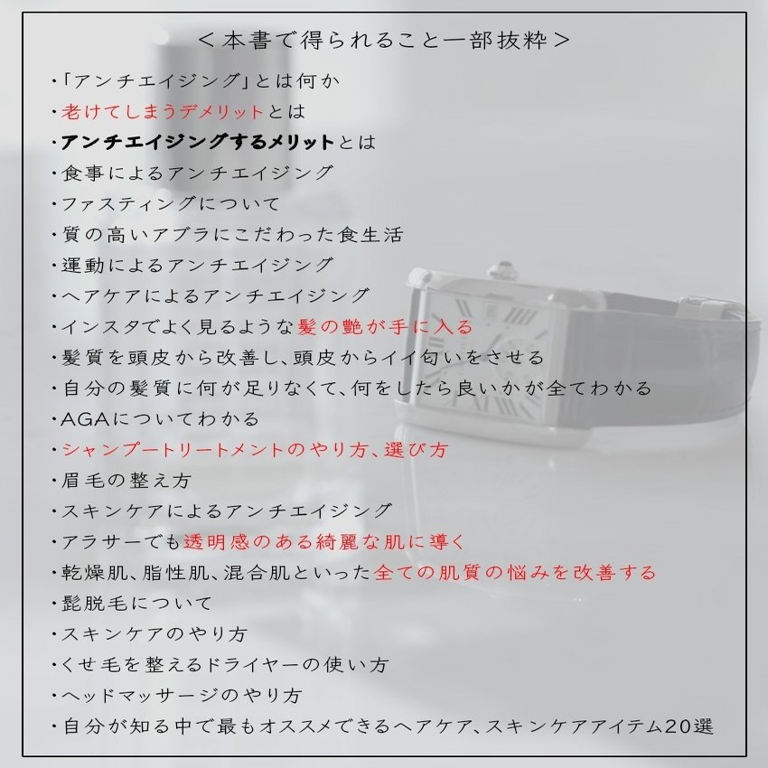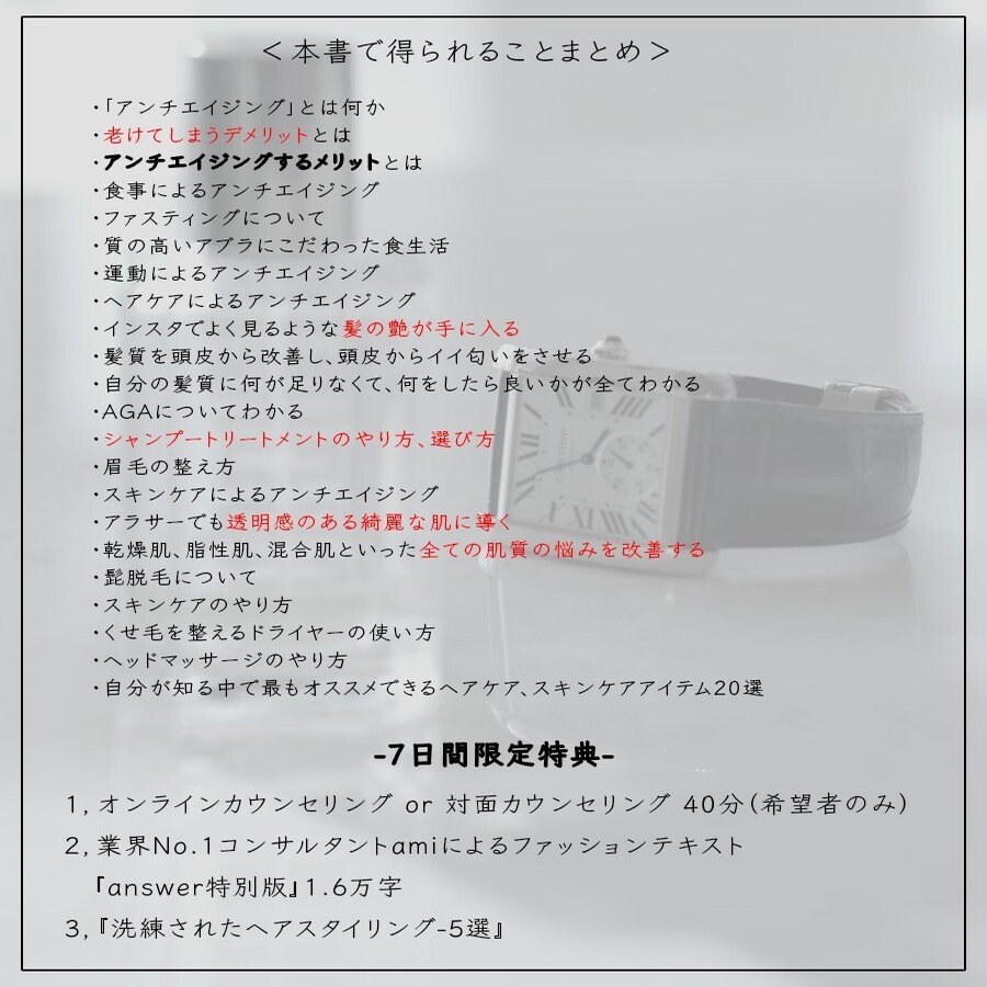 ここに「アンチエイジングの全て」を記し、「アラサーでも老けずに若々しく、かつ肌やヘアのコンプレックスを全て解決するもの」である。